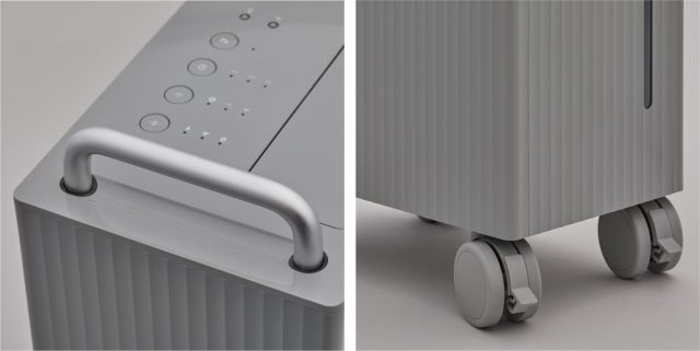 アルミハンドルと、360°回転するキャスターを搭載しているので、お部屋では除湿と除菌消臭、洗面所や脱衣所では衣類乾燥など、様々な用途に合わせて活躍します。特に排水時は重たいタンクを持ち運ぶ必要がないので、ラクに排水することができます。また、キャスターはストッパー付きなので安全です。