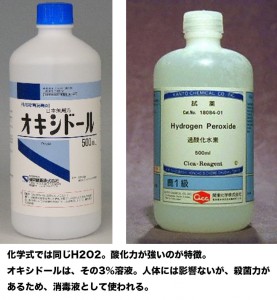 過酸化水素水を3%含ませた水溶液は、オキシドールといいます。商品名はオキシフル。