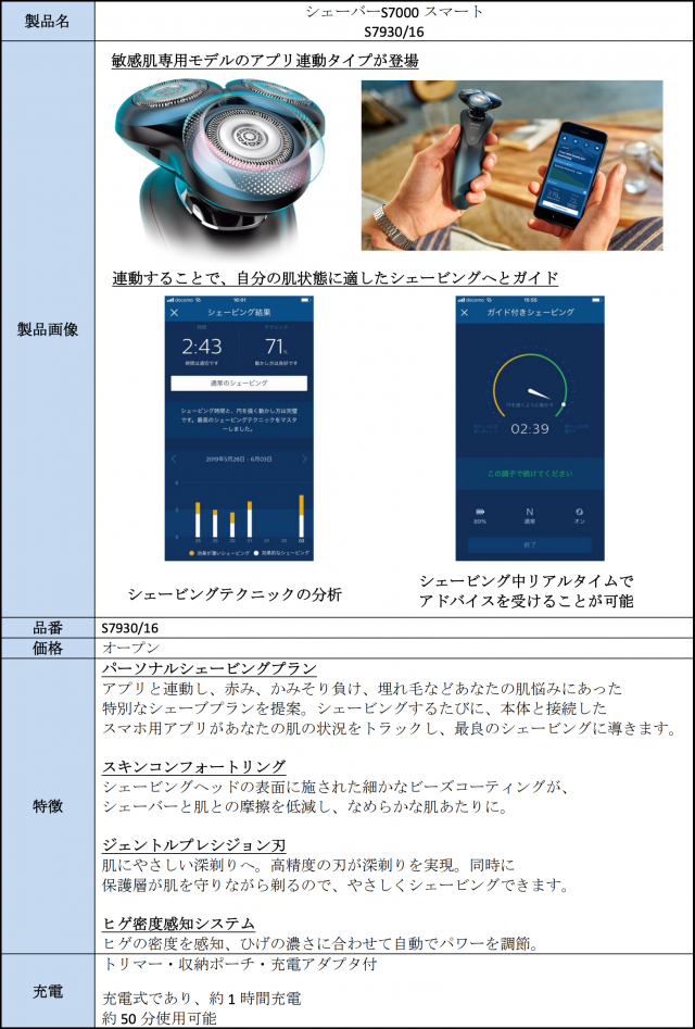 フィリップスから、ユーザーの肌状態をトラックし、最良のシェービングへ導くことができる皮膚科医と共同開発したアプリ連動シェーバーの新モデル「シェーバーS7000 スマート」が、2019年7月上旬より、全国の家電量販店等で順次販売されます。
