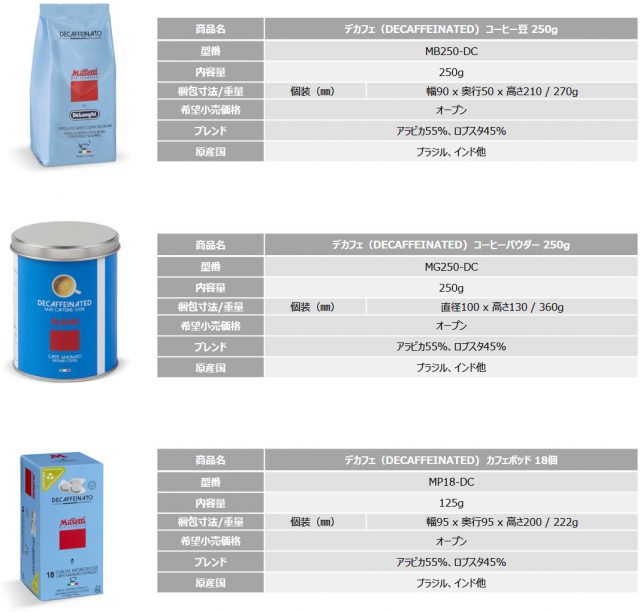 一方で体に気遣う人たちの間では、カフェインの摂取についても意識が高まっているようです。これに対応すべく、デロンギから、眠る前のリラックスタイムや長時間の仕事に集中したい時など、様々なシーンや用途に合せることができるようにコーヒー豆に含まれるカフェインを0.1%以下まで取り除いたデカフェタイプのコーヒーの販売が開始されました。