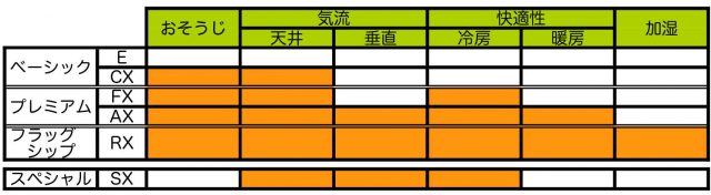 一般には、リビングには、RX〜FX。それ以外は、CXがいいと思います。しかし、個人的に欲しいのはSX。空調家電は目立たない方がイイというのが私の考えで、その考えに一番合っています。