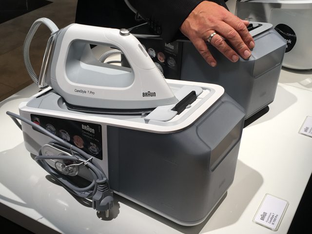 ドイツ ベルリンで行われる家電ショー IFAには、これでもかというほど、アイロンが展示されています。しかも、このスチームアイロン、ほとんどのモノが、水タンクが別に付いています。多い場合は3L位水が入ります。