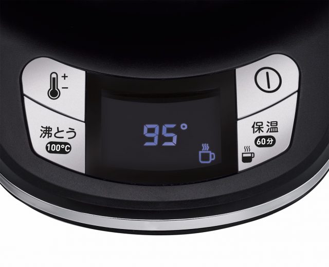 なかでも「温度コントロールタイプ」は、7段階(60℃、70℃、80℃、85℃、90℃、95℃、100℃)で温度設定ができるため、コーヒーや緑茶、紅茶といったティータイムやお湯を使う料理シーンで、大変便利と好評、景気後退にもかかわらず、7%近い売上増を示しております。