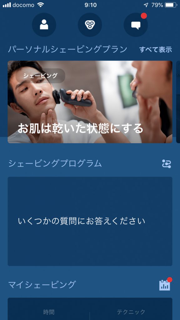 アプリは2つに分かれています。カスタマイズのための「パーソナルシェービングプラン」と上手くシェーバーを使うための「マイシェービング」です。