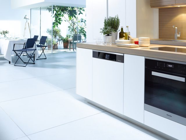 Mieleの食器洗い機は様々なキッチンに調和する洗練されたデザイン。本キャンペーンモデルは、お客様のご希望のドア材を取り付けるタイプのため、キッチンに美しい統一感をもたらします。
