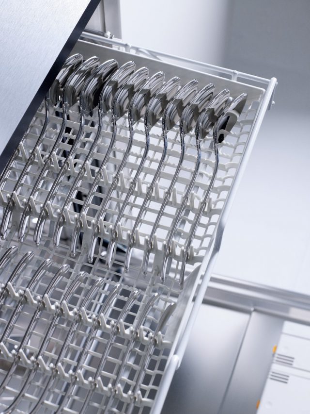 仕切りに沿ってセットできる、Mieleの代名詞、カトラリートレイは出し入れしやすく、重なりによる汚れ残りや傷を防ぎ、美しい洗い上がりを実現します。