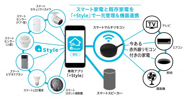 +Styleでは、既存家電をアプリ対応に進化させるスマートマルチリモコンのほか、 2019年8月に発売した、お求めやすい価格のスマートロボット掃除機やスマートLED電球などをラインアップ。これにより、家電製品を総入れ替えすることなく追加コストを抑える形で、お客さま自身が「必要だ」と感じる部分から、お手軽にスマートホームを始められます。