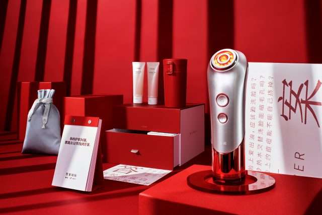 医師が参加するコミュニティプラットフォーム「丁香医生」とのコラボレーションにより誕生。一番人気の美顔器『ブルームレッド』と美容成分をふんだんに配合した『フローレスゲル』などをセット。