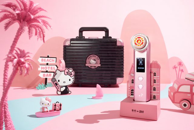 ”水光機” の愛称で人気の『フォトプラス PLUS M』に、本セットでしか手に入らない「Hello Kitty」の美顔器スタンド、キャリーケース、ラゲージタグをセット。