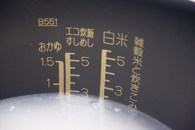 ちょっとユニークなのは、内釜の目盛りでしょう。これは内釜に水を張ったとき目盛りが濃くでる仕様になっています。中には、目盛りが読みづらい炊飯器もあります。STANは隅々まで、よく気を付けられた炊飯器なのです。