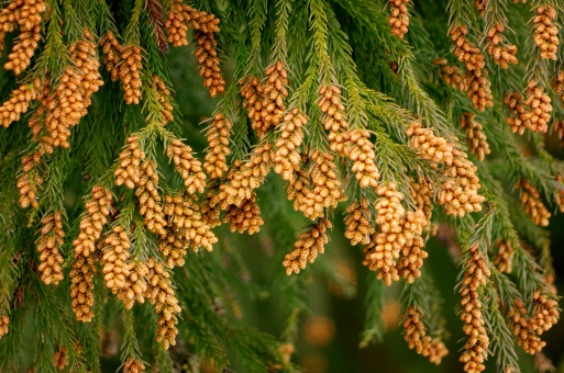 スギは、雌雄同株。このため、同じ樹にに雄花と雌花の両方を持つ。