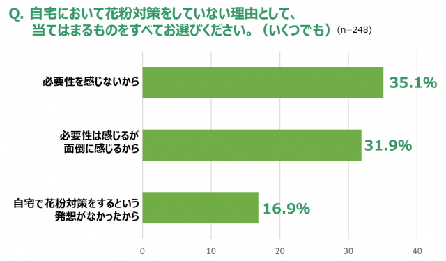 ■花粉に悩んでいても自宅での花粉対策はなし。その理由は必要性を感じないから。