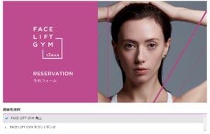 ●ステップ1. 『FACE LIFT GYM』オフィシャルサイト( https://www.face-lift-gym.com/ )にて来店日時と、メニューを選択し予約。
