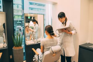 どのメニューもトレーナーが1on1でつき、初めて美容機器に触れる方でも実感のあるお手入れを行うことができ、 ご自身で顔印象をアップさせる方法を覚えてご自宅での美容ケアに役立足せる事ができます。