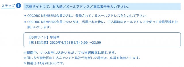 ※応募時にCOCORO MEMBERSへの会員登録は不要です。