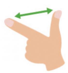 3)その状態をキープして離し、親指から人差し指までの長さを測れば、それがサイズの目安になります。