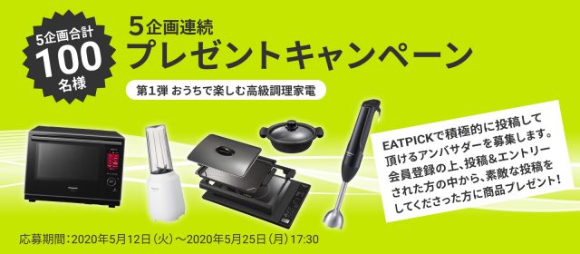 ・第1弾:2020年5月12日~5月25日、募集人数24名(パナソニック製キッチン家電をプレゼント)