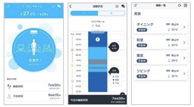 ◾️離れて住む人の在室状況や就寝・起床の最新情報を専用アプリで約10分ごとに確認可能