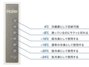 さらに、前面タッチ式操作パネルで-24℃~4℃まで6段階の温度調節ができ、用途に合わせた温度での保存が可能となります。