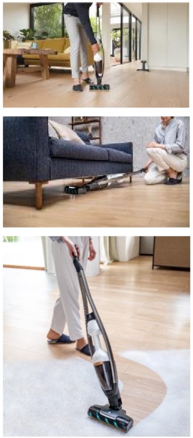 昨今、自宅で過ごす時間が長くなり、家の中を快適な空間に整えたい、家の中で使うものにこだわりたいという消費者の声が増しています。今回登場する「Pure Q9」は、 インテリアと調和するデザインながら、パワフルな吸引力に加え、操作性や静音性にもこだわった、より良い住空間を求める方に最適な製品と言えます。「Pure Q9」ではエフォートレスな操作性を追求した設計で、コンセプトは“踊るように、奏でるように。”。実際、家中くまなくスムーズに掃除できます。掃除の際は充電台から本体を滑り出させてスイッチを押すだけ。充電台から持ち上げる必要がないため、わずらわしさを感じずにお掃除することができます。