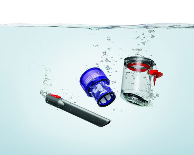ワンタッチでゴミに触れることなくゴミ捨てができるよう設計。レバーを引き上げると、ゴム製のスクレイパーがシュラウドについたゴミをこそぎ落とし、クリアビンを衛生的に保ちます。よりスムーズに容易にゴミを排出できるため、メンテナンスもこれまで以上に簡単で衛生的です。ブラシバー、クリアビン、一体化したプレ/ポストモーターフィルター、隙間ノズル等はすべてまるごと水洗いが可能です。 ⁷