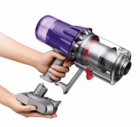 毎分最大125,000回転し、パワフルな吸引力を生み出すDyson Hyperdymiumモーターを搭載。フローリングなどの硬い床面に加え、カーペット繊維の奥深くまで入り込んだゴミをも取り除きます。また、人間工学に基づいてバランスよく手に収まるよう設計されているため、高い場所の掃除、ハンディクリーナーとして車内や布団の掃除など、 1台で多様な用途での使用が可能です。製品の全長が約7.8cm短くなった²ことで、より操作性が向上しています。また、ボタンひとつでバッテリーの着脱が可能なため、 簡単に交換ができます。