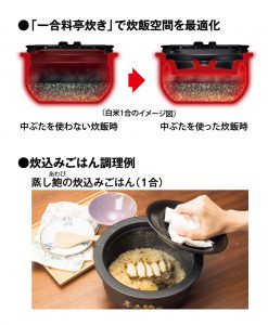 ●土鍋中ぶたで炊飯空間を最適化。「一合料亭炊き」が0.5合炊きにも対応!