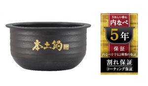 内なべは陶器の本場・三重県四日市市の伝統工芸品「四日市萬古焼」を使用。細かい特別な土を使い、約1,250度の高温で焼きあげました。内なべの強度は一般の市販の土鍋と比べて約2倍*以上あります。万が一の場合でも内なべ割れ・フッ素コーティングのはがれに対して5年間保証しており、 安心してお使いいただけます。