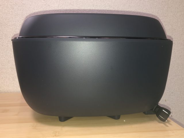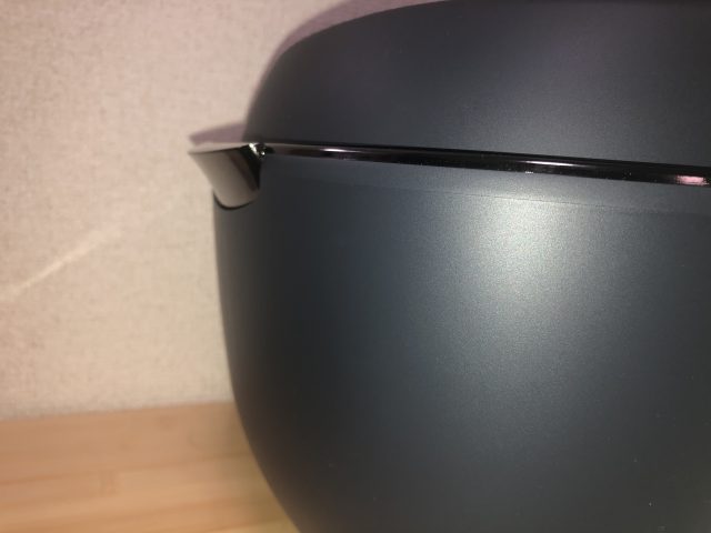 JPL-A100のデザインはちょっと独特です。炊飯器としては異形と言って良いかも知れません。写真で見たときはさほどでもなかったのですが、実物を見るとかなり違います。実に独特のフォルムです。