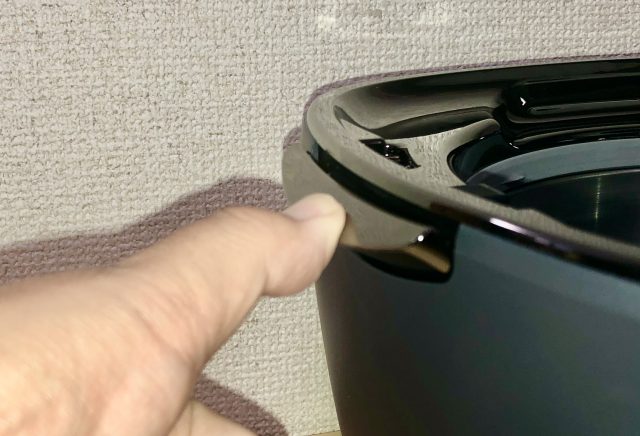 内釜を取り出しやすい様、手を入れる凹みが設けられている。