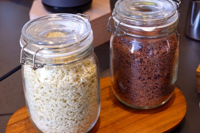 例えば、あるメーカーのミルクチョコレート(工業生産品)ですが、成分を見ると、砂糖、カカオマス、全粉乳、ココアバター、レシチン(大豆由来)、香料。特に、レシチン、香料はおかしいですね。前述の不要添加物に当たります。これはカカオマスの量が十分でないからとも言えます。良質のカカオは高いのです。