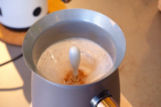 しかし、基本設計は電気ケトルに酷似しています。そりゃ、温度を上げて作るわけですから、当たり前といえば当たり前ですが、違うところもあります。それが、温度設定と撹拌機能です。
