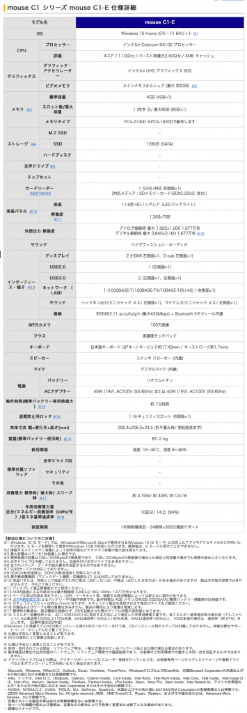#情報家電 #PC #パソコン #マウスコンピューター #C1 #ノートブック #廉価PC #生活家電.com