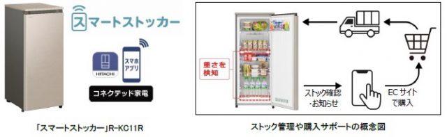 日立グローバルライフソリューションズ(株)(以下 日立)から、「日立冷蔵庫コンシェルジュアプリ」によりスマートフォンと連携し、庫内の重量センサーで検知した食品の残量をアプリに表示し、ストック管理や購入をサポートする「スマートストッカー」R-KC11Rが、オープン価格にて、3月上旬から発売されます。