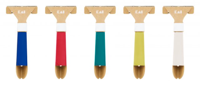 構造は丈夫な紙スプーンや牛乳パックから着想を得て、単にプラスチックを紙に置き換えるのではなく、プラスチック製のカミソリと遜色ないハンドルの持ちやすさや、切れ味にこだわって設計。また、ハンドルをプラスチックから紙にすることで、薄型パッケージによる持ち運びの利便性やグラフィックの自由度の向上といった機能面でのメリットも実現。社内マーケティング部門がこのアイデアに注目し、SDGsコンセプト商品として商談会で展示したところ、予想以上の反響があったことから、この度の商品化に向けて本格始動する運びとなりました。商品化にあたり、ジェンダーフリーな カラー選定にもこだわり、 ユニセックスでお使いいただける計5色がラインナップされています。公式オンラインストア「KAIストア」での先行販売ののち、2021年秋には全国の各小売店などでの販売をスタートする予定。