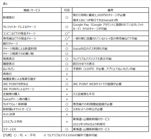 フィットビットは Charge4に加え、他のデバイスも今年中にSuicaに対応させる予定です。以下は、Suica対応Fibitデバイスに接続した際にFitbitアプリで利用できるSuica機能とサービスの一部です。更に詳しい情報は、表1をご参照ください。