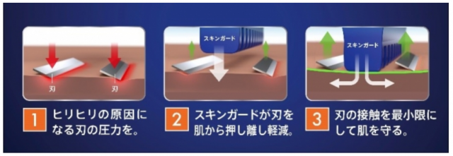 ●刃を肌から押し離し肌への摩擦を最小化。『スキンガード』搭載
