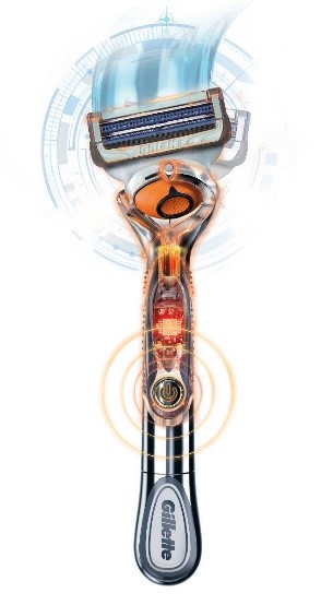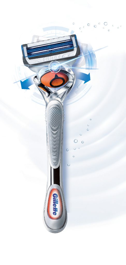 「フレックスボール テクノロジー」はジレットがより肌に密着した剃り残しの無いシェービングを目指し、開発した技術です。従来シェーバーの2次元的な首振りの動きでは、刃は顔の凹凸のある部分で肌と接触しなくなり、 それが剃り残しの原因となっていました。ジレットの「フレックスボール テクノロジー」はハンドル部分に搭載されたフレックスボールにより替刃部分の可動域を拡げることで3次元のシェービングを実現しています。