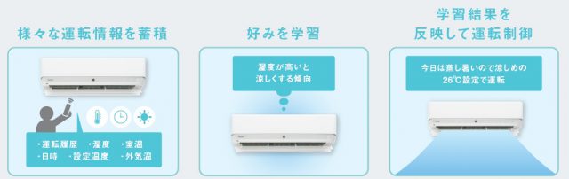 ●エアコンが使う人の好みを学習して、自動で運転を制御する「学習運転モード」を搭載