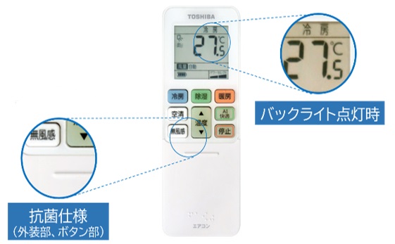また、操作履歴や環境情報などの内容をエアコン本体に蓄積し、好みを学習して自動で運転制御をする「学習運転モード」を追加。AIによる自動運転を充実させています。東芝のスマートフォン専用アプリ「IoLIFE(アイオーライフ)」には、生活リズムに合わせて曜日ごとに運転オン・オフタイマーが最大42個まで設定可能な「ウィークリータイマー」や、複数のエアコンを一度に停止できる2つの機能を加え、使いやすさを向上させています。リモコンは抗菌仕様にすることで、清潔性にも配慮されています。