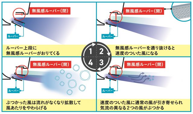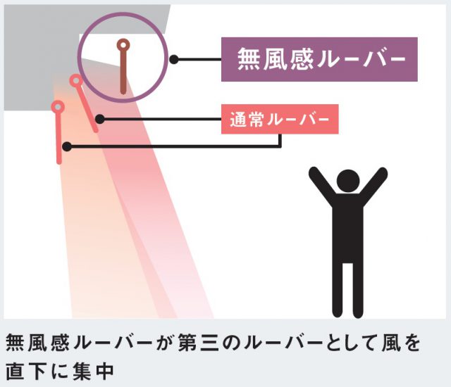 ●独自の「無風感技術」を冷房時に加えて、暖房、空気清浄、除湿運転時にも採用