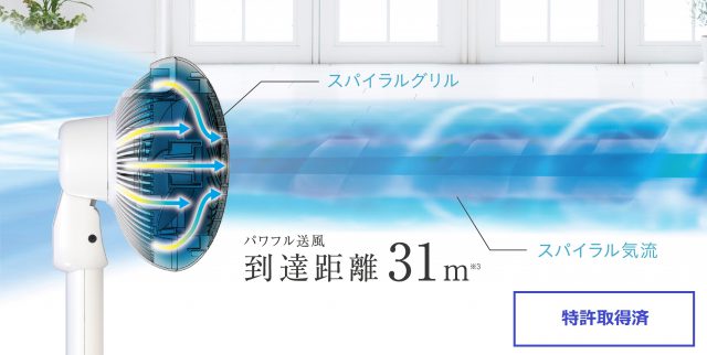 ●スパイラルグリルでパワフル送風を実現