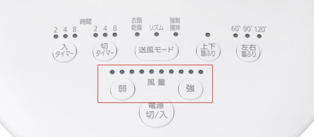 最大10段階まで風量を調整することができ、部屋の空気を撹拌するためのパワフルな送風から、長時間あたっても疲れにくく体にやさしい微風まで調整できます。