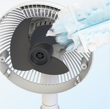 今回発売する「コンパクトサーキュレーター扇風機」は、本体のポールを取り外し、本体背面のスタンドに収納できるため、本体の高さを約612mmから約369mmまで使用用途に応じて変更できます。前面カバーにドーム型形状のスパイラルグリルを採用し、高性能なDCモーターを搭載することで、10段階に細かく風量調整でき、部屋の空気を撹拌するためのパワフルな送風から長時間あたっても疲れにくい、体にやさしい微風まで調整できます。また、前面カバーは容易に取り外しできるので、日々のお手入れも簡単です。