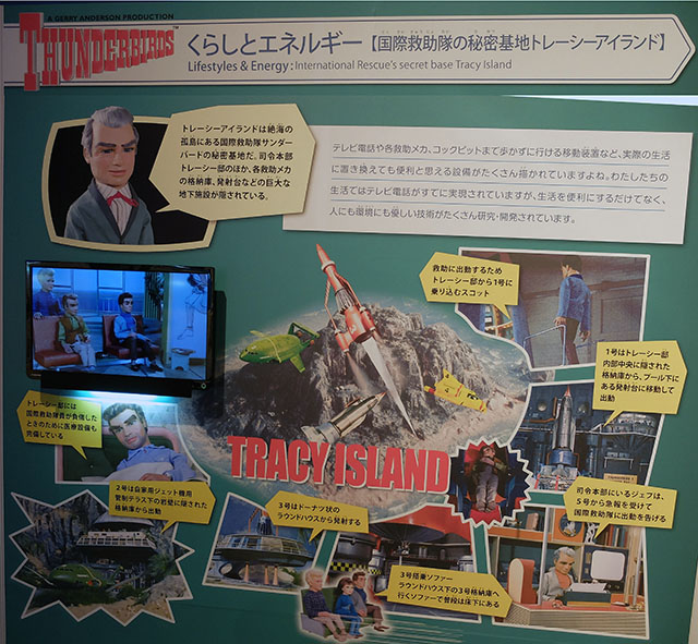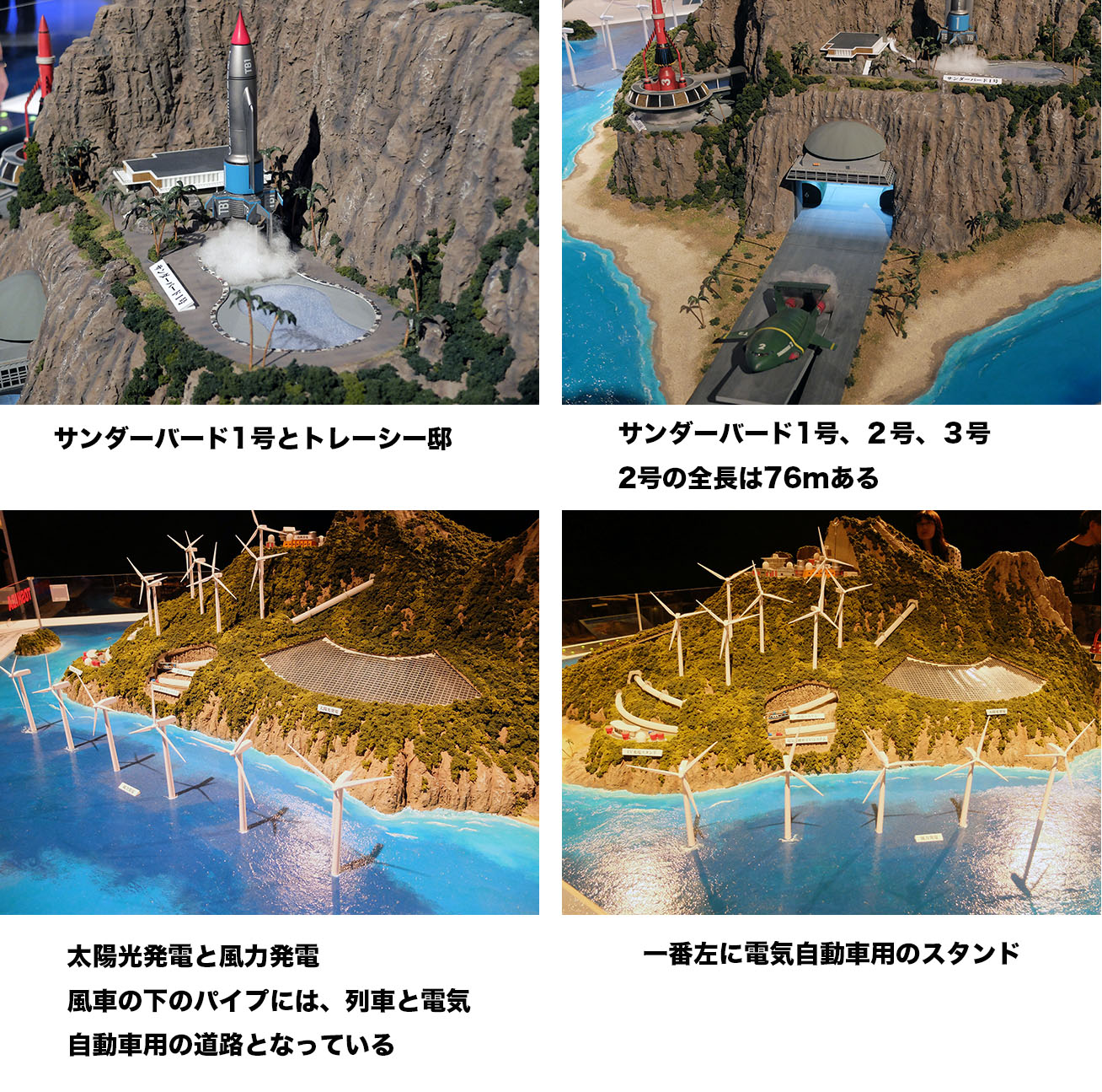 今回のサンダーバード博は、最新の技術を持ついろいろなメーカーがサポートしています。で、トレーシー・アイランドの立体模型は東芝が手がけました。