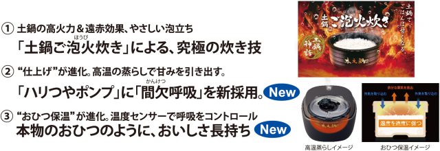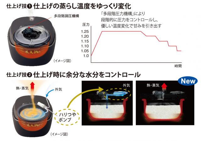●“仕上げ”が進化。高温の蒸らしで甘みを引き出す。 「ハリつやポンプ」に「間欠呼吸」を新採用。