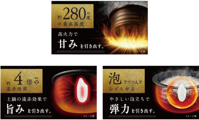 ●土鍋の高火力&遠赤効果、やさしい泡立ち 「土鍋ご泡火(ほうび)炊き」による、 究極の炊き技