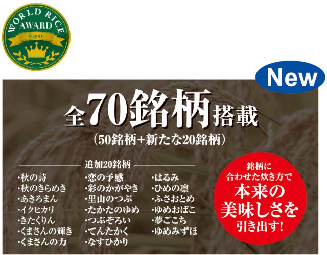 ●お米を科学で炊きわける 「銘柄巧み炊きわけ」が70銘柄に進化!