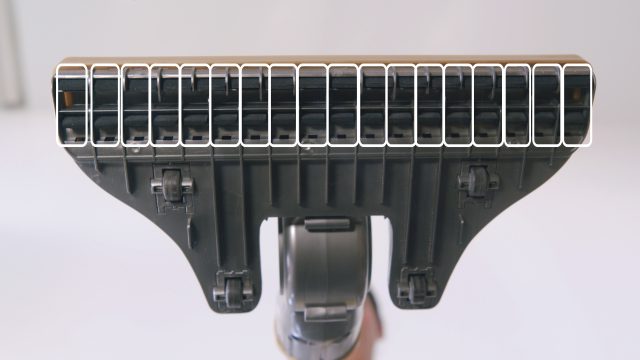 その秘密は搭載されているクリーナーヘッド。搭載する『MJ-X』は、独自の構造で、「強い吸引力と軽い作業性」を両立するクリーナーヘッドです。18個の細ノズルを付けたような構造と、独自開発のルーバーの採用で、吸引力と軽さを両立し、毛足の長いじゅうたんやカーペット、畳の奥の細かな塵埃(チリ、ホコリ)をしっかり吸い出します。