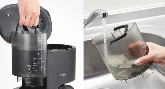 リブを深くしたフィルターケースの採用で、ペーパーとフィルターケースの間に空間ができ、奥深くコクのある味わいを抽出するじっくり“蒸らし”が実現。雑味が少ないまろやかなコーヒーが味わえます。◾️給水・お手入れしやすい「着脱式水タンク」